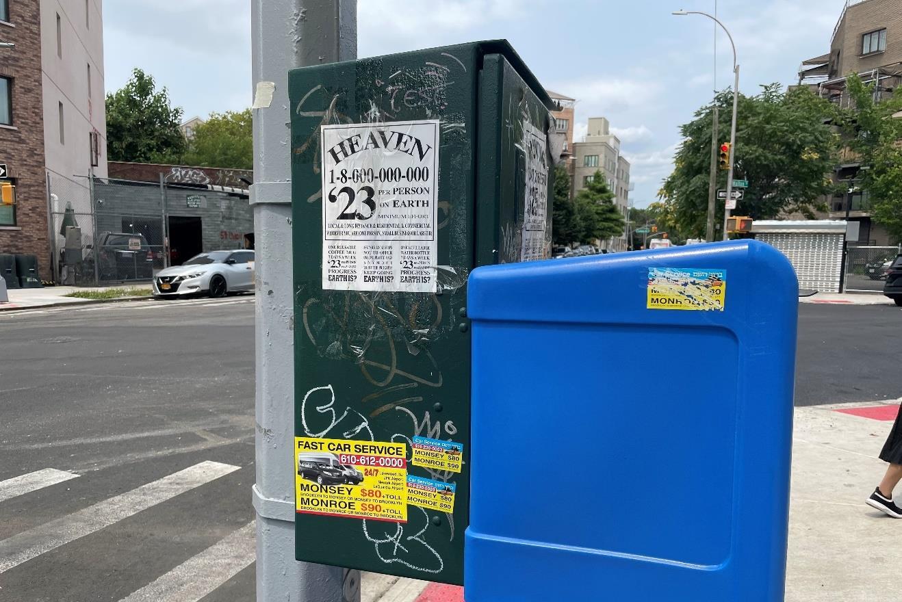 The location of the last atypical street ad is on a light pole at the corner of Union Avenue & Wallabout Street.