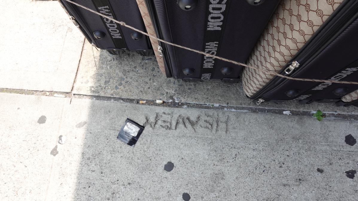 Ifyouarereadingthis itmeans you’vealreadyarrivedtotheplazawhereGraham Avenuestarts.Checkthefollowingphototoseewhatyou’llbelookingfor Heaven sometimes carved, sometimes handwritten; carved here in soft cement by an unknownhand!