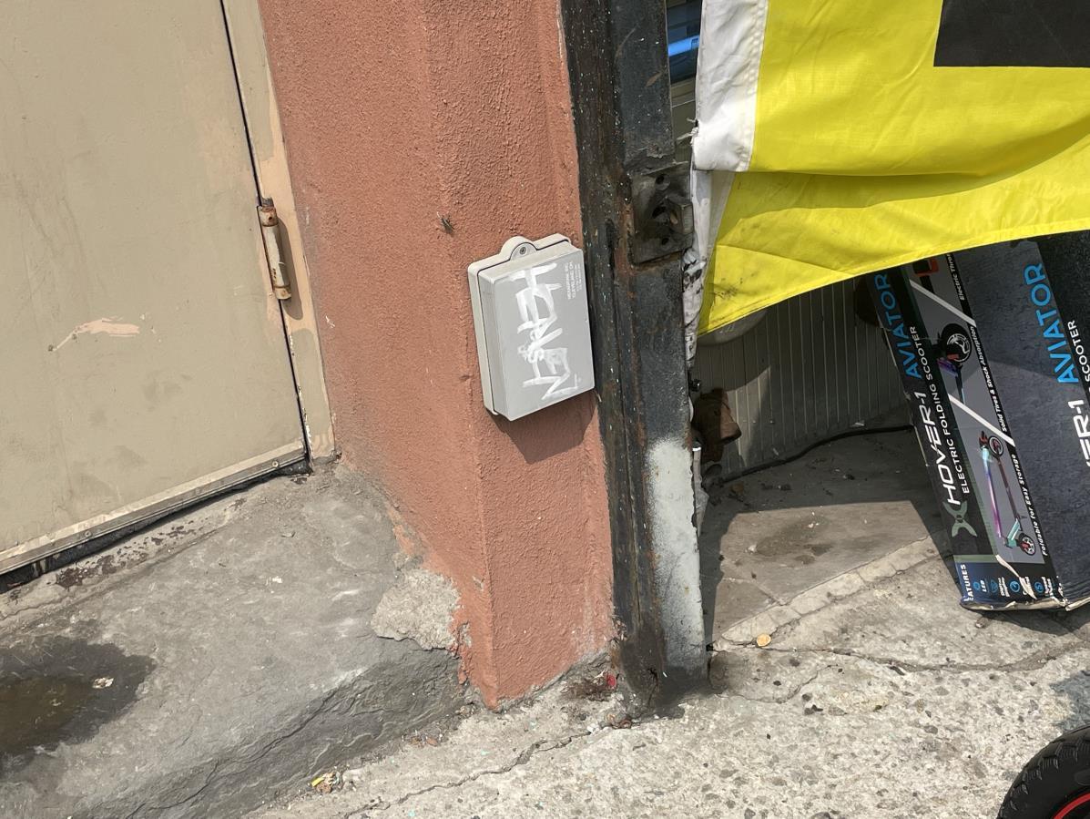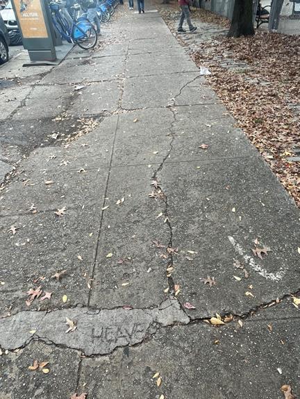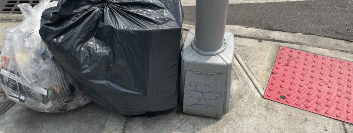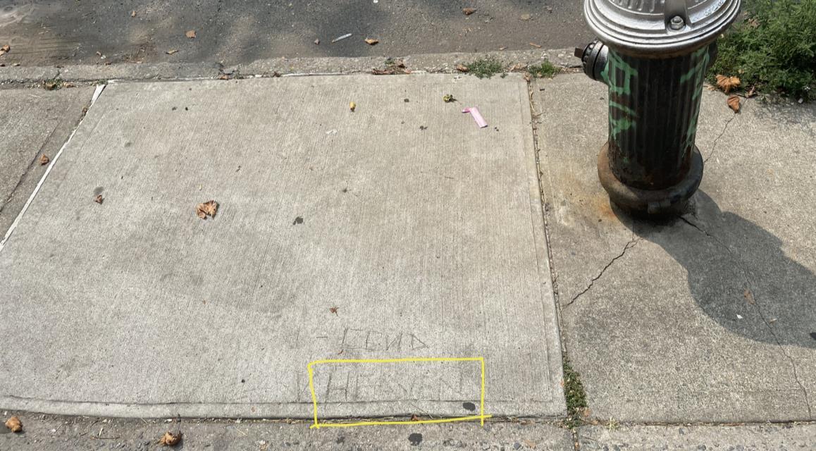 From here, cross Hopkins, then Ellery Street, and as you go straight on Throop, visuallyscanthewalls,doors,andeventhetrashcans.