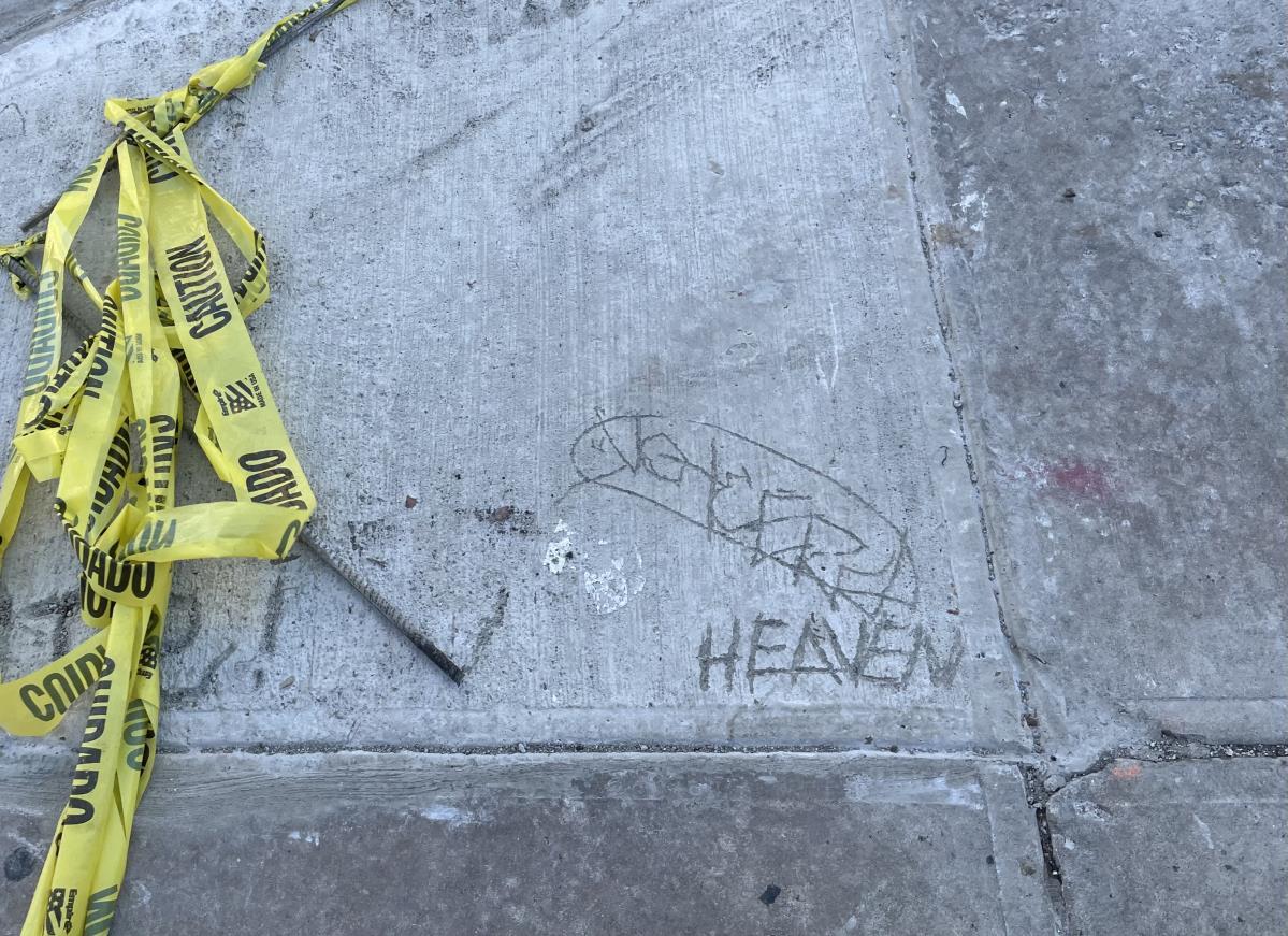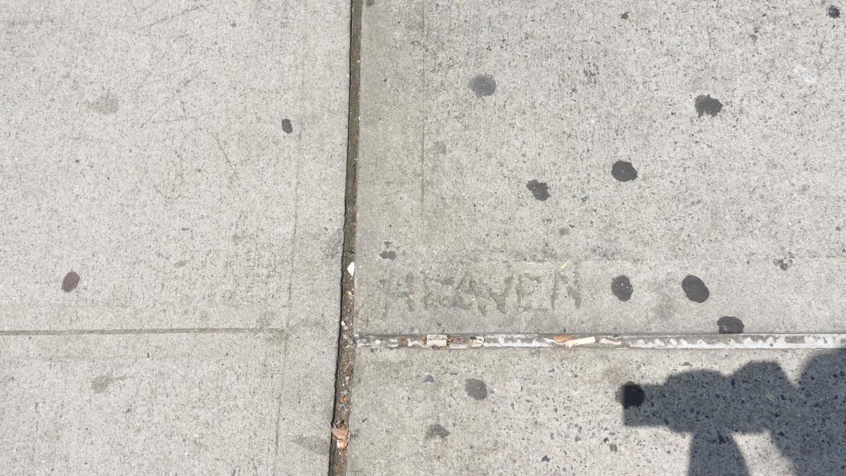 Ifyouarereadingthisitmeans you’vealreadyarrivedtotheplazawhereGraham Avenuestarts.Checkthefollowingphototoseewhatyou’llbelookingfor Heaven sometimes carved, sometimes handwritten; carved here in soft cement by an unknownhand!