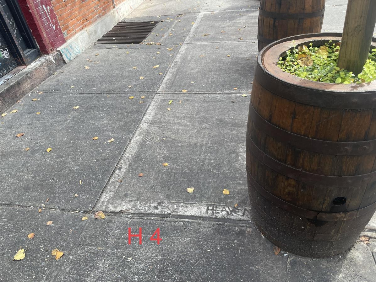 HINT: While the first two Heaven were carved, others may be handwritten on vertical surfaces, such as Heaven at street address #11. Hence, aside from the sidewalk,alsopayattentiontowalls,storefronts,lightpolesandsuch.Seephotoson nextpage& Make A Wish assoonasyoufind Heaven!
