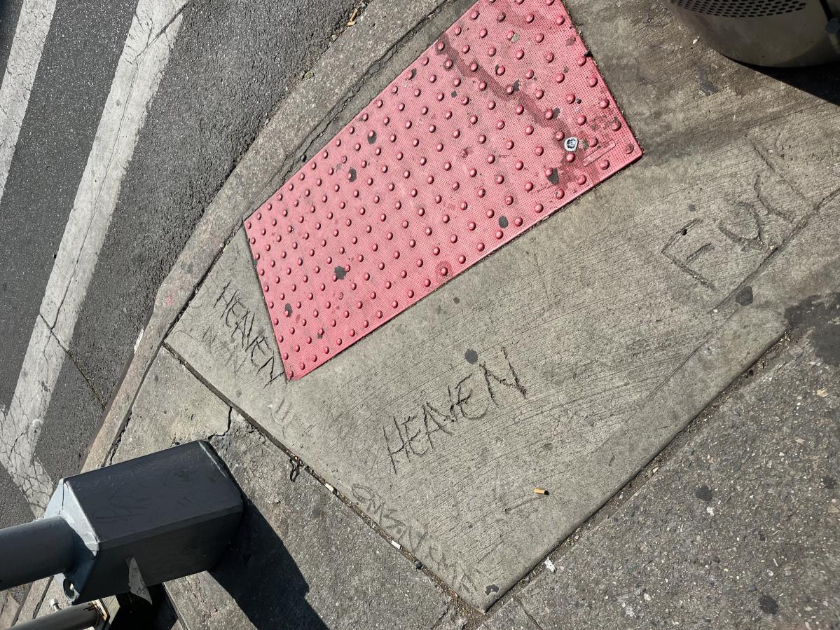Ifyouarereadingthisitmeans you’vealreadyarrivedtotheplazawhereGraham Avenuestarts.Checkthefollowingphototoseewhatyou’llbelookingfor Heaven sometimes carved, sometimes handwritten; carved here in soft cement by an unknownhand!