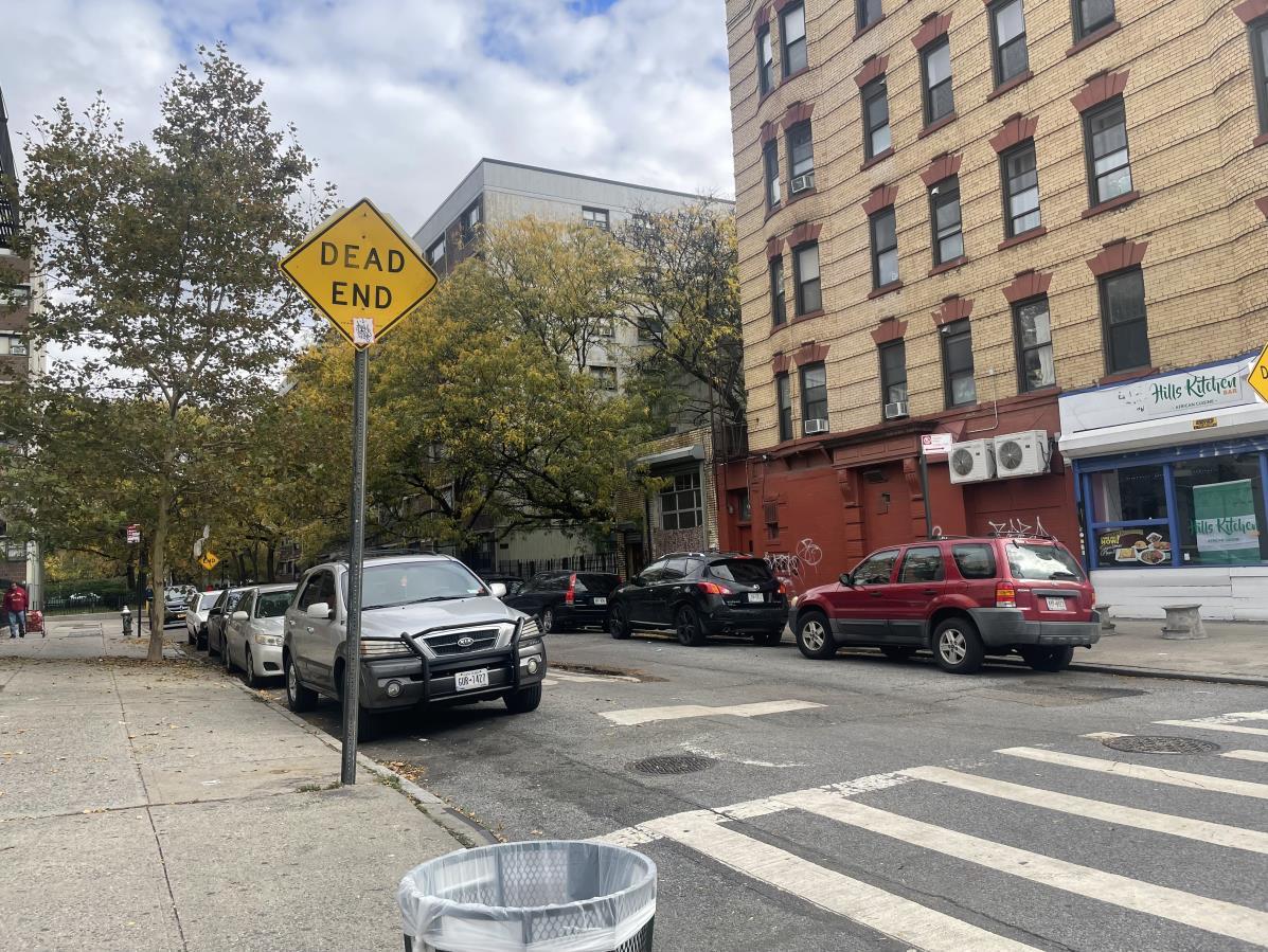 From here, cross Hopkins, then Ellery Street, and as you go straight on Throop, visuallyscanthewalls,doors,andeventhetrashcans.