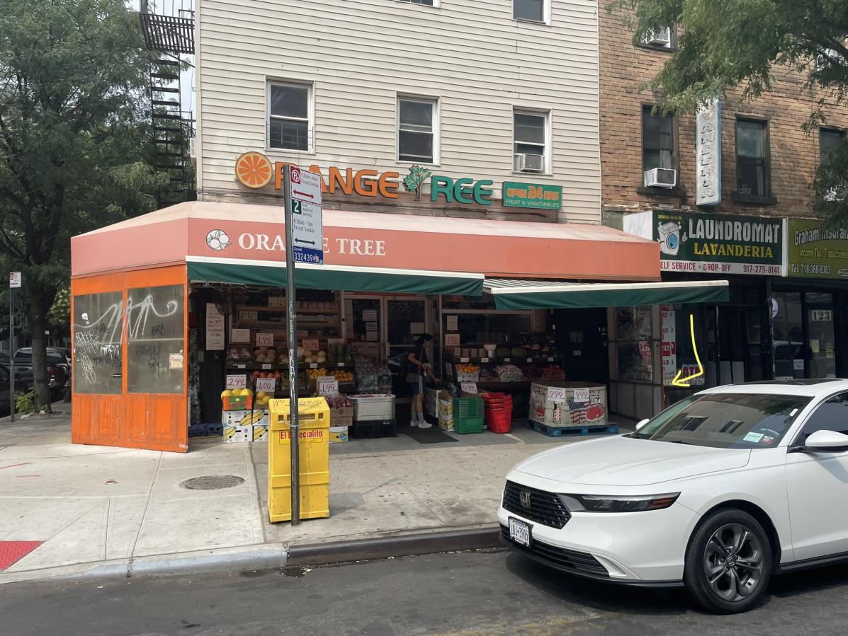Thearrowcircledinblue(nexttotheH=theHospital)pointsouttheplazawhere GrahamAvenuestarts.ThatiswherethefirstHwordwaitstobefound.Walkthere & when you are close to the fruit stand , read Clue number 2. (The fruit stand shouldbethere24/7;incaseitisnot,readClue2assoonasyouarriveattheplaza.)