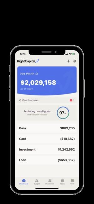 RightCapital is our comprehensive financial planning software. It allows us to assemble your entire plan and analyze how different recommendations and strategies impact your long-term finances. Whether using their retirement analysis, tax planner, social security optimizer, or estate planning tool, RightCapital delivers exceptionally detailed financial plans. It’s an interactive software we can give you access to, allowing you to stay up to date on your plan, recommendations, tasks, budget, and overall long-term wealth picture.