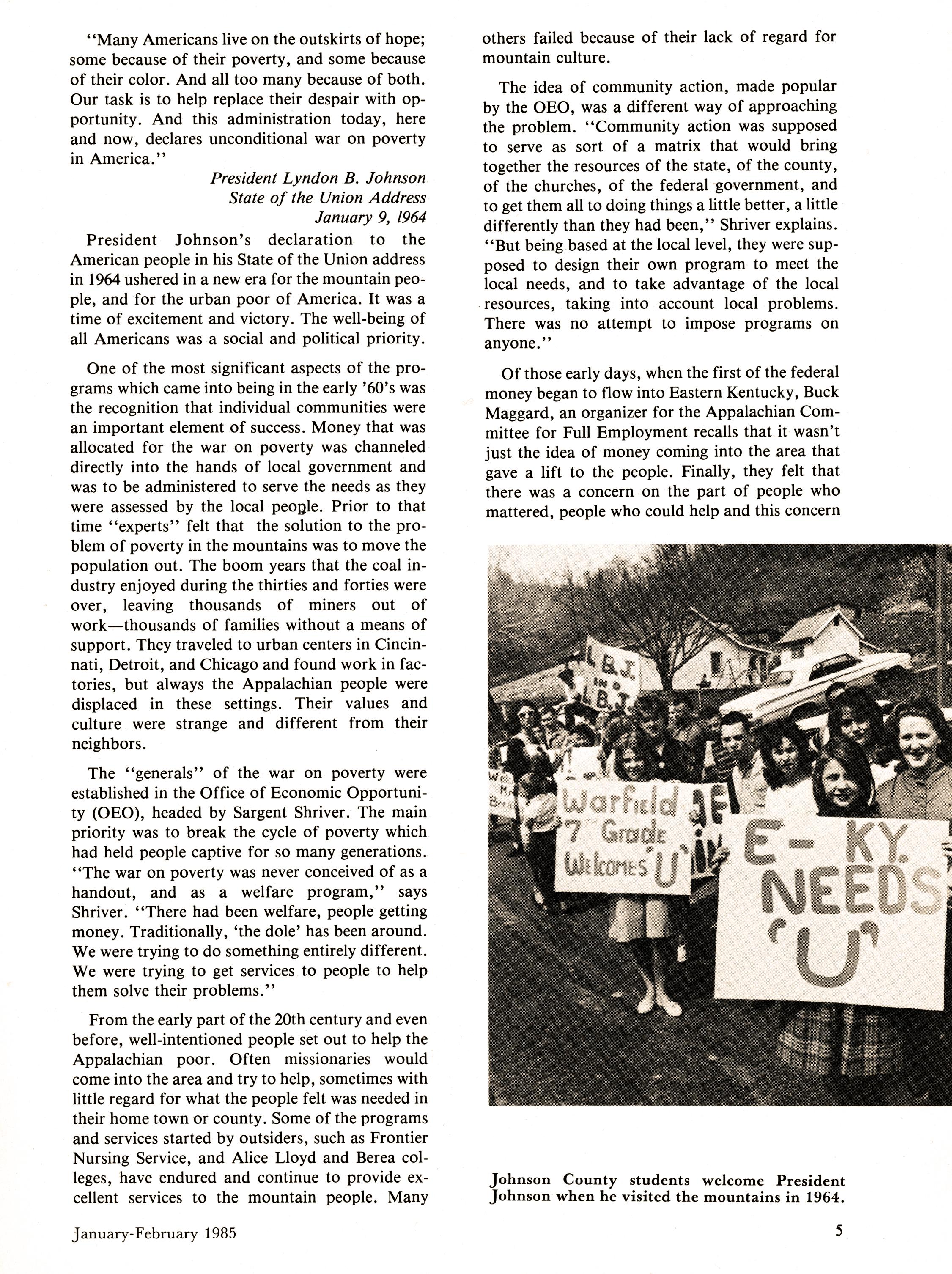 I was involved in the “War on Poverty” back in the late 1960s and my organization, the Council of the Southern Mountains, was one of its casualties. It disintegrated over the “War on Poverty” because as good of an organization as it was, it was ultimately overrun by zealous do-gooders who wanted to use it as a way to stop strip-mining right now or to end segregation right now, and do all these things that are good and great… And it was wonderful to experience, but painful at times, because you realize that all these