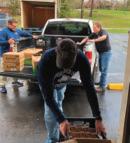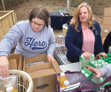 Heather Peters (left) helps Caroyln Lindsey (right) prepare commodity boxes. Peters has been volunteering part-time or on a short-term basis with CAP since 2014. She is completing a full year of service while also living on her own.