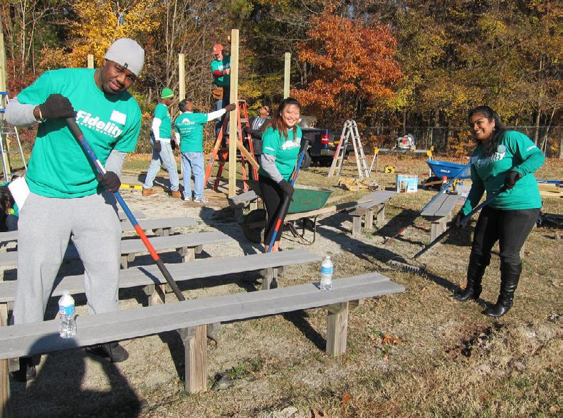 Manley added, “Through Fidelity Cares, we create opportunities for associates to volunteer in communities where Fidelity has a presence. In North Carolina, we partner with nonprofits like Activate Good to assist in transformation days at Lowe’s Grove Middle School. These are large-scale projects like building the Zen garden to assist those experiencing food insecurity. Also, partnering with Junior Achievement of Eastern North Carolina to help deliver relevant programming to help plant the seeds for planning for a secure financial future.”