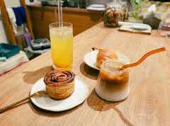 溫潤的木桌椅,拼貼出來的溫馨牆面,以及充 滿精緻收藏品的中空櫃,顯現出店主人內在溫 暖的靈魂,姐妹二人同心攜手研發不同風味的 蛋糕,為蛋糕設計擺盤圖紋,以水果鮮奶油跟 巧克力醬,拼湊出不同的裝飾,一如賞心悅目 的藝術創作;除了甜點之外,這裡也供應特殊 天然果香的瑞士啤酒,以及文創小飾物唷!