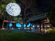 除了參拜之外,沿著寺廟旁的步道 往上走,白色圍牆環抱隱入山林的 寺院,牆內是小橋流水,池裡是錦 鯉與成對鴨群,日正當中的午時, 暖暖的陽光灑在白色拱橋上,池水 波光粼粼,牆外則有一處櫻花林, 每年2~3月花期期間,吸引不少 遊客駐留拍照,從白天到黑夜,觀 音寺內外燈火通明,等待著相信有 求必應的人們。