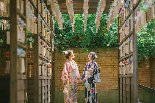 「桃園忠烈祠」是目前台灣唯一完整保存的日式神 社建築,採用的是台灣本土檜木,屋頂銅瓦綠跡斑 斕,古樸典雅兼之,建築技術出自日本匠師之手。 每一座殿舍的風格統一,但細部皆不同,有著高昂 的藝術價值及歷史見證。