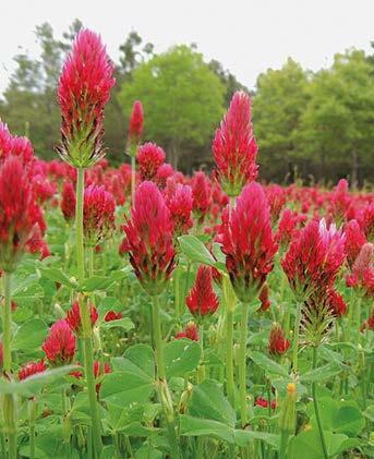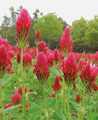 Clovers have excellent capability to fix nitrogen at soil temperatures above 8°C but are less effective over the winter period. Crimson clover is suited to earlier sowing in July/August to maximise warmer temperatures. Quicker to establish than longer-term clovers. Ideal for usage as green manure for soil improvement.