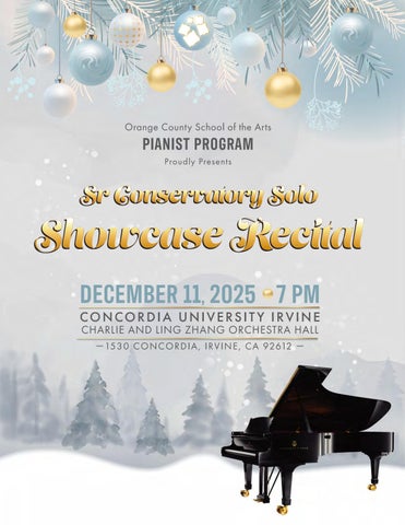 Thank you for attending the Senior Conservatory Fall Piano Showcase Recital. Today’s program highlights the dedication, growth, and artistry of our young pianists, each of whom has worked tirelessly to prepare for this performance.