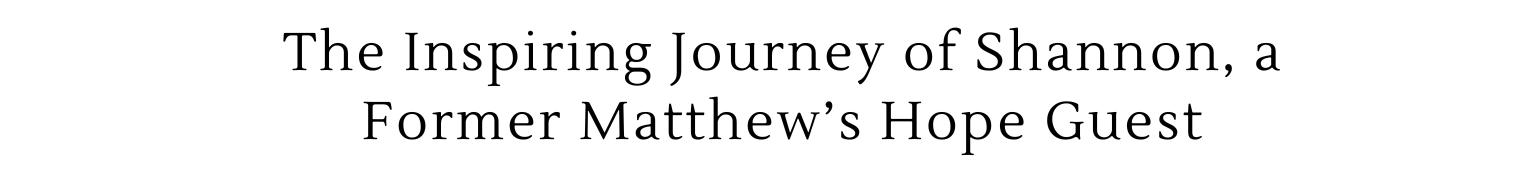 Overcoming homelessness is a heart-wrenching and arduous journey for anyone who has experienced it. Despite the stigma and hardships faced, some individuals manage to find the strength and resilience to break free from the chains of homelessness. Shannon, a former guest at Matthew’s Hope, is one such example. Through her story, we aim to shed light on the struggles and experiences of those facing homelessness and underline the importance of community support and organizations like Matthew’s Hope.