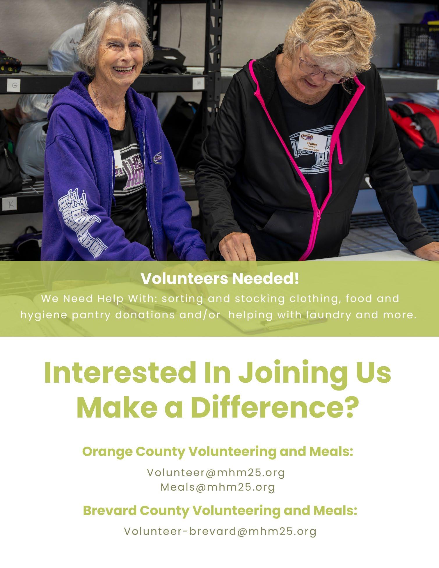 Many of our volunteers have been with us since the very beginning, their or making meals/sandwiches for our ministry? Please use the contact infor