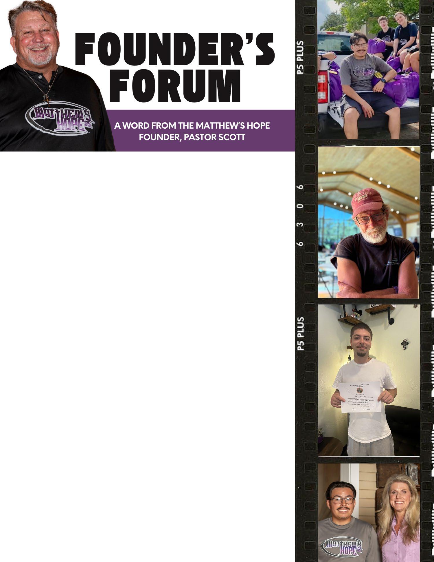 Once I heard about the incredible work Shannon Diaz, Matthew’s Hope Orange County Director, and her team were doing with Jacob and David, I said this is the cover story. There is nothing that describes “Moving Forward” more than two young men who have overcome addiction, battled homelessness, and now are earning degrees thanks to Matthew’s Hope, its volunteers, and its donors. We’re truly in a full circle moment that illustrates the Matthew’s Hope mission “Help Us, Help Them, Help Themselves”. The Program works!