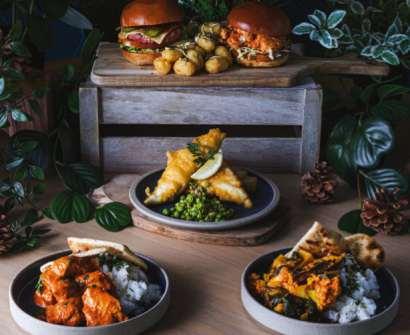 There are four delicious dishes available alongside plant-based variations Choose from a crispy chicken burger with chipotle sauce, the Ascot Burger with bacon and smoked applewood cheese, classic battered haddock or lightly spiced butter chicken curry – all available for £13.50.