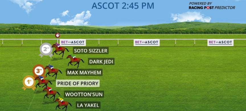 Distributed in accordance with the Stakes and Prize Money Code. £39344 to the winning horse, the second to receive £13776, the third £6296, the fourth £4912, the fifth £4328, the sixth £3152, the seventh £2560, the eighth £1968, the ninth £1376 and the tenth £984. For three yrs old only, Rated 76-95 (also open to such horses rated 96 and 97; such horses rated 75 and below are also eligible - see Standard Conditions). Free Entry, Declare by 10.00 a.m. August 10th. Lowest weight 8st 11lb; Highest weight 10st 2lb Penalties, after August 5th, 2023, for each race won 3lb Dubai Duty Free has generously sponsored this race and will present a memento to the winning owner, trainer and jockey In addition, Dubai Duty Free will award a prize of £200 to the lad or girl responsible for the best turned out horse in this race. All number cloths to be carried in this race have been sponsored and will carry the name/logo of Dubai Duty Free. The sponsorship payment of £500 will be distributed equally amongst all horses starting in this race in accordance with paragraphs 24 to 27 of the Stakes and Prize Money Code. This race will be restricted to 10 runners plus two reserves The two reserves will be nominated R11 and R12. A horse will not be permitted to declare as a reserve if declaring for another race on the card. The reserves will be required to travel to the racecourse and will each be paid Appearance Money of £500, unless they are required to run, in which case no payment will be made. Reserves can be substituted for non-runners up until 45 minutes before the advertised race time on Saturday, August 12th. Declarations to run for this race must be made by 10.00 a.m. on Thursday, August 10th. The British Horseracing Authority has modified the Race Entry Code, such that where nineteen or fewer entries have been received at the Calendar Office by the time of entry or as provided for in the Race Entry Code, this race shall be subject to re-opening entry procedure which shall operate up to 11.00 a.m. on Tuesday, August 8th. The British Horseracing Authority has also modified the Stakes and Prize Money Code for the purposes of this Race. The British Horseracing Authority has granted special permission to the Ascot Racecourse Executive to stage a special ‘Draw’ to take place on Thursday, August 10th, at which horses will be allocated jockeys by a series of ballots All jockeys participating in this race will carry their names on the back of their silks Additional information relating to this race is included at the beginning of this day’s race programme in the Races to Close section of The Racing Calendar Special Conditions apply to this race. Please refer to the detailed particulars published in the Racing Calendar, on the BHA’s Racing Administration Internet site, www2.racingadmin.co.uk. SPECIAL NOTE: Whilst there is no Owners’ stake money payable for entry into this race, the usual fees specified under the provisions of the Race Entry Code will be payable for each horse entered. PLEASE NOTE: In accordance with the provisions of paragraph 9 of the Weights and Handicapping Code a horse must have run three times or more in order to qualify to run in this race. 21 entries at £0Closed August 7th, 2023 Owners Prize Money Winner £30856; Second £11760; Third £5376; Fourth £4200; Fifth £3696; Sixth £2688; Seventh £2184; Eighth £1680; Ninth £1176; Tenth £840 (Penalty Value £39344) 4 Eliminated Under Rules (I)9 and (I)10 SS