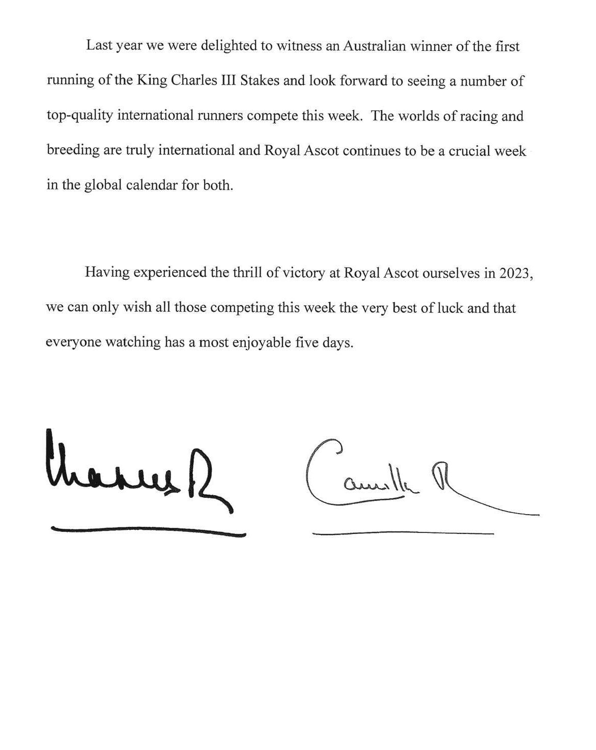 To be involved at Royal Ascot is a privilege and I extend my very best wishes to competitors and spectators alike on this most special of weeks.