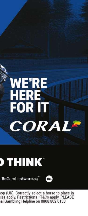 Third Race 2.25 - THE CORAL SCOTTISH CHAMPION HURDLE RACE (A LIMITED HANDICAP) (CLASS 1) (Grade 2) (GBB RACE) Distributed in accordance with the Stakes and Prize Money Code. £56270 to the winning horse The second to receive £21200, the third £10610, the fourth £5300, the fifth £2660, the sixth £1330, the seventh £660 and the eighth £340 for four yrs old and upwards. Enter by noon, April 2nd and pay £125 stake, Confirm by noon, April 15th and pay £375, Declare by 10.00 a.m. April 18th. Lowest weight 10st 6lb; Highest weight 11st 12lb Penalties, after April 7th, 2024, for each hurdle race won 6lb (No penalty to increase a horse’s weight above 11st 12lb). Coral has kindly sponsored this race and will present a memento to the winning owner, trainer and jockey All number cloths to be carried in this race have been sponsored and will carry the name/ logo of Coral. The sponsorship payment of £500 will be distributed equally amongst all horses starting in this race in accordance with paragraphs 24 to 27 of the Stakes and Prize Money Code. The British Horseracing Authority has modified paragraph 6 of the Weights and Handicapping Code for the purposes of this race, such that racecourse performances up to and including Sunday after Closing, may be taken into account. PLEASE NOTE: A novice or juvenile horse shall only be qualified to run in this race if it has run a minimum of four times in Hurdle races in Great Britain, Ireland or France in accordance with paragraph 15 of the Weights and Handicapping Code 48 entries, 23 at £125 25 at £500 - Closed April 2nd, 2024. Owners Prize Money Winner £43040; Second £17740; Third £8870; Fourth £4440; Fifth £2220; Sixth £1110; Seventh £550; Eighth £280. (Penalty Value £56270)