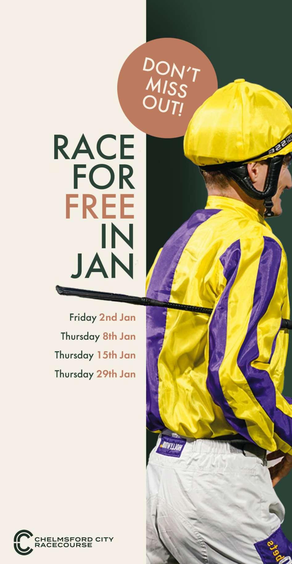 If racing is abandoned prior to the first race, a full refund will be given. After the third race has been run, we regret that no refunds can be made in respect of admission charges. Refunds are not issued on the day – tickets purchased on the gate must be sent within 28 days of the event to Chelmsford City Racecourse, Chelmsford, CM3 1QP