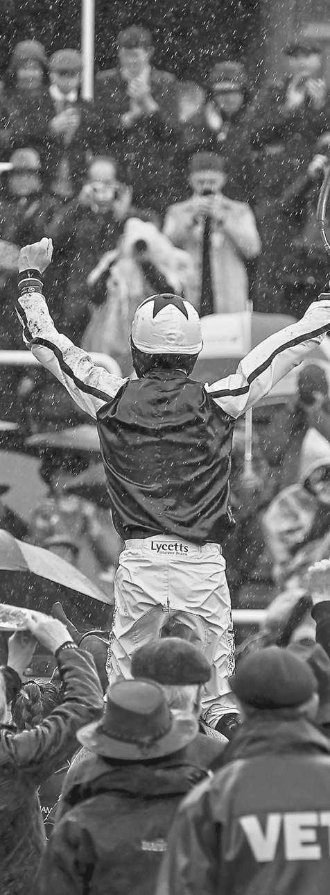 Sixth Race 4.50 - THE JOHNNY HENDERSON GRAND ANNUAL CHALLENGE CUP HANDICAP STEEPLE CHASE (CLASS 1) (PREMIER HANDICAP) (GBB RACE) Distributed in accordance with the Stakes and Prize Money Code. £70337 to the winning horse The second to receive £26500, the third £13262, the fourth £6625, the fifth £3325, the sixth £1662, the seventh £825 and the eighth £425. for five yrs old and upwards. Enter by noon, February 21st and pay £155 stake, Confirm by noon, March 9th and pay £470, Declare by 10.00 a.m. March 13th. Penalties, after February 26th, 2023, a winner of a steeple chase 5lb No penalty to increase a horse’s weight above 12st. The Challenge Cup, which was subscribed for by the Town of Cheltenham, is to be held by the winning owner until February 1st, 2024. Presentations will be made to the winning owner, trainer and jockey, and an award of £200 will be given to the stable employee judged to be in charge of the best turned out horse in this race The British Horseracing Authority will amend paragraphs 28 to 32 of the Weights and Handicapping Code and the Declaration of Jockey section of the Race Entries Code in the event that raising of the weights at the 24-hour stage proves necessary. This race will be restricted to 20 runners plus two reserves The two reserves will be nominated as R21 and R22. TThe procedure for the allocation and operation of the reserves protocol will be as detailed in the notice headed ‘Reserves’ which has been published in The Racing Calendar and which also appears in the reserves notice in the Conditions For Entry Section, accessed from the Information menu on the BHA Racing Administration Internet site (www2.racingadmin.co.uk). Trainers are reminded of the provisions of paragraph 41 of the Race Entry Code which require that they MUST notify the Racing Calendar Office IMMEDIATELY when the decision has been made not to run. This will maximise the list of runners and determine whether the weights will need to be raised. The British Horseracing Authority will modify the Rules of Racing as a consequence of providing two reserves for this race. The non runner penalty will be waived for any horse which is deemed a non-runner by 1.00 p.m. the day before the race PLEASE NOTE: Any horse for whom a confirmation of entry has been submitted will not be permitted to declare to run if, at the time fixed for declaration, it has been declared to run in any other race at the 2023 Cheltenham Festival, which has yet to take place. (This will apply whether subsequently declared a non-runner or not, unless the horse has been eliminated from a race, or declared as a reserve and not been made a non-runner.) The British Horseracing Authority has modified paragraph 6 of the Weights and Handicapping Code for the purposes of this race, such that racecourse performances up to and including Sunday, February 26th may be taken into account. A Confirmation of Entry will not be accepted for any horse for whom a Medication Declaration Form A is not submitted to the BHA via cheltenham-meds@britishhorseracing.co by 7th March, 2023. PLEASE NOTE: A novice horse shall only be qualified to run in this race if it has run a minimum of three times in Steeple Chases in Great Britain, Ireland or France in accordance with paragraph 15 of the Weights and Handicapping Code 33 entries, 6 at £155, 27 at £625. - Closed February 21st, 2023. Owners Prize Money. Winner £53800; Second £22175; Third £11088; Fourth £5550; Fifth £2775; Sixth £1388; Seventh £688; Eighth £350. (Penalty Value £70337.50) 13 Eliminated Under Rules (I)9 and (I)10.