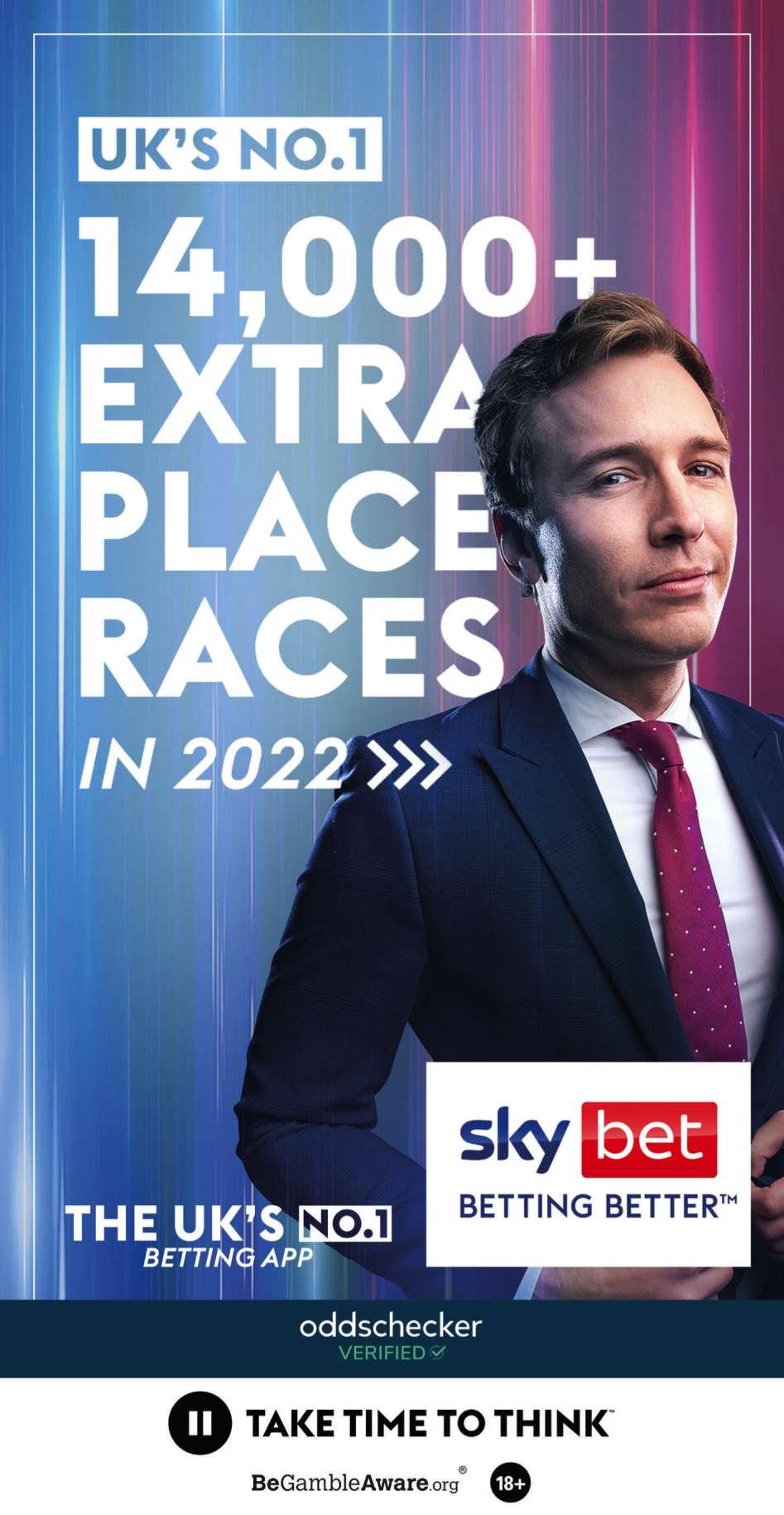 Fifth Race 5.45 - THE SKY BET SUNDAY SERIES SPRINT HANDICAP STAKES (CLASS 3) Distributed in accordance with the Stakes and Prize Money Code £18039 to the winning horse The second to receive £8459, the third £4231, the fourth £2114, the fifth £1057 and the sixth £528. for four yrs old and upwards, Rated 0-90 (also open to such horses rated 91 and 92 - see Standard Conditions). Enter by noon, May 8th and pay £175 stake, Declare by 10.00 a.m. May 12th. Lowest weight 8st 2lb; Highest weight 9st 12lb Penalties, after May 6th, 2023, for each race won 4yo to 6yo 5lb; 7yo and up 4lb Sky Bet has very generously sponsored this race and will present memento to the winning Owner, Trainer and Jockey In addition there will be cash prizes given to the persons in charge of the the first 3 horses judged to be the Best Turn Out. 1st £125, 2nd £75, and 3rd £50. 20 entries at £175. - Closed May 8th, 2023. Owners Prize Money. Winner £14221; Second £7112; Third £3556; Fourth £1778; Fifth £889; Sixth £445. (Penalty Value £18039) Weights raised 1lb and paragraphs 27 to 31 of the Weights and Handicapping Code complied with where applicable SS