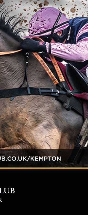 DEPUTY SAFEGUARDING LEADS Brian Clifford Beverley Frith R ACECO U RS E I N FO RMATIO N : All Enquiries: Telephone: 0344 579 3008 Email: kempton.information@thejockeyclub.co.uk www.thejockeyclub.co.uk/kempton Find us on Facebook, Instagram & Twitter A BIG THANK YOU for visiting Kempton Park Racecourse today OUR NEXT MEETING IS ON WEDNESDAY 12TH OCTOBER unibet.racingtv.comebfsco.uk tallions.com
