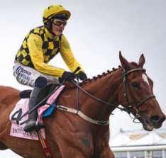 favourandhewaswell-positionedthroughout.In stark contrast to Jonbon, he was fast and made ground five out, putting himself on the heels of theleadersandtravellingsweetly,hewasalmost upsidesthreeout Goingbestofall,heloomedup ontheinsideofQuilixiosandthepairpulledclear from two out He looked ready to tackle Quilixios as he capsized at the final fence and given howstronglyhefinished,itislikelythathewould haveprevailedinanycase.Givenhisassociation with the late Michael O’Sullivan, it was a hugely emotive success but also one which was thoroughlydeserved Lastseason’struncatednovice campaignmadelifetoughforhimearly-season andBarryConnellhadhimintip-topshapeforthe day which mattered most He could easily now headtoPunchestown–wherehewonabumper and a maiden hurdle – in a bid to complete a Grade1springdouble.Quilixioswasintheprocess ofrunningahugeraceandhad,ofcourse,beaten the winner by 7½ lengths at Naas in November when conceding 4lbs to Marine Nationale. He hasn’tbeenenteredatPunchestown,however.