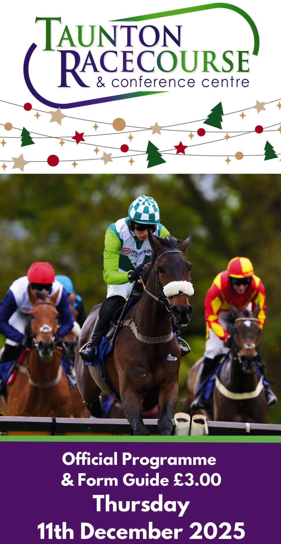 First Race 12.35 - THE KINGS COLLEGE TAUNTON EBF JUNIOR ‘NATIONAL HUNT’ HURDLE RACE (CLASS 4) (GBB RACE) Distributed in accordance with the Stakes and Prize Money Code £4955 to the winning horse The second to receive £2282, the third £1141 and the fourth £571 for three yrs old, which are E.B.F. eligible, which have not run in any race prior to October 1st, 2025, have not run in a Flat race and have not run in more than three previous hurdle races Enter by noon, December 5th and pay £45 stake, Declare by 10.00 a.m. December 9th. Weights: 11st each Fillies allowed 7lb Penalties, a winner of a hurdle race 7lb Of 2 hurdle races 10lb Of 3 hurdle races 12lb A memento will be presented to the winning owner and a cash prize of £50 to the groom in charge of the best turned out horse THE TRUSTEES OF THE E.B.F. have kindly contributed £1000 towards the prize money for this race Runs (not wins) in Junior NH Hurdle races will not prevent a horse from running in a Junior NHF race during the same season. A win in a Junior NH Hurdle race will not lead to loss of novice status for future seasons Junior NH Hurdle winners will be penalised for those win(s) only in Junior NH Hurdle Races and Class 1 races Junior NH Hurdle wins will count for loss of Maiden status, and all runs will be assessed by the BHA Handicapper Wins in other Hurdle races will count as normal both for penalties and loss of novice status 8 entries at £45. - Closed December 5th, 2025 Owners Prize Money. Winner £3797; Second £1899; Third £949; Fourth £475 (Penalty Value £4955.32)