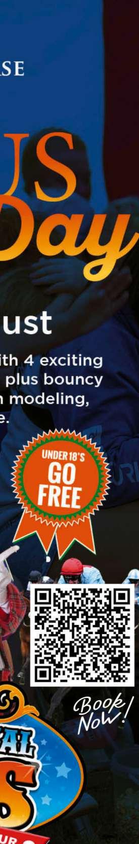 Fourth Race 3.45 - THE EVERY RACE LIVE ON RACING TV SELLING HANDICAP STAKES (CLASS 5) Distributed in accordance with the Stakes and Prize Money Code £5234 to the winning horse The second to receive £2456, the third £1227, the fourth £614 and the fifth £306. for three yrs old only, Rated 51-70 (also open to such horses rated 71 and 72; such horses rated 50 and below are also eligible - see Standard Conditions). £50 stake if the horse is rated 51 or higher, or £10 stake if the horse is rated 50 or lower with £40 extra if the horse is declared to run Declare by 10.00 a.m. July 24th. Lowest weight 8st 4lb; Highest weight 9st 9lb Penalties, after July 13th, 2024, for each race won 6lb The winner to be sold by auction in accordance with the Rules of Racing for £4000 Advertised Claiming Price of any other horse starting £8000. RACING TV has generously sponsored this race and will present a memento to the winning owner and also kindly award a £50 cash prize to the person responsible for the horse judged to be the best turned out for this race A commission of 10% (plus V.A.T.) of the selling price will be payable to the Racecourse by the Owner of the horse at the time of sale In the case of a dead heat, both horses will be offered up for auction and the same commission charging structure will apply The claiming price of each horse will be subject to an additional 10% Premium (plus V.A.T.) payable to the Racecourse, split equally between the Buyer and the Owner, and both the selling price and the advertised claiming price will be subject to V.A.T., where applicable The post race auction of the winner will be conducted in POUNDS 11 entries, 1 at £10 and 10 at £50. - Closed July 20th, 2024. Owners Prize Money. Winner £4129; Second £2065; Third £1032; Fourth £516; Fifth £258. (Penalty Value £5234) SS SEE PAGE 22 FOR THIS RACE.