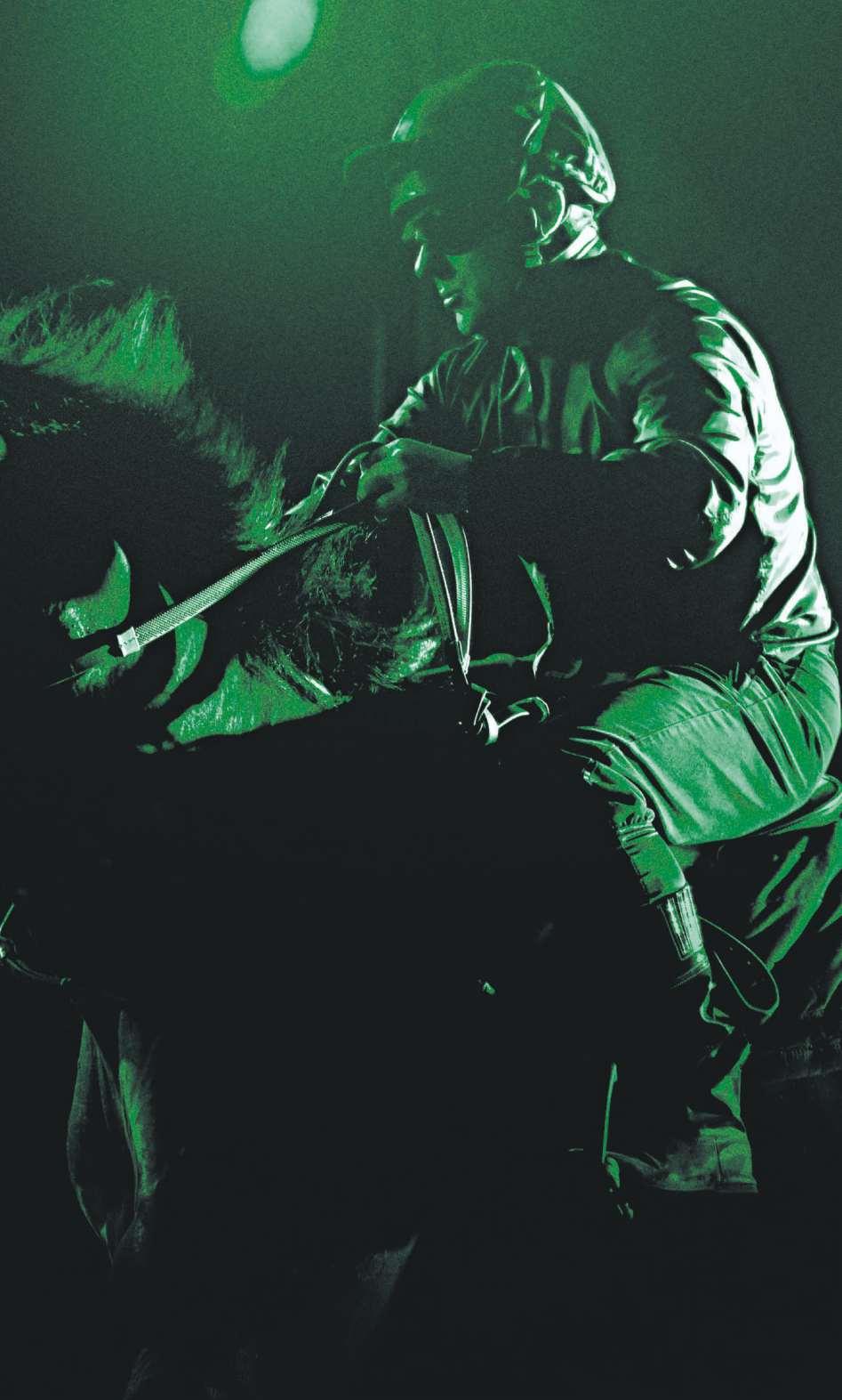 11 ran Hood worn by No 1. Tongue Strap worn by No 4, 5, 7, 8, 9. Sheepskin Cheek Pieces worn