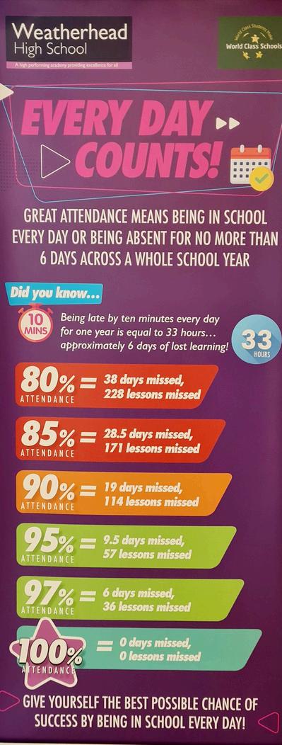 Attendance is vital if your child is to fulfill their potential, make progress and take advantage of the opportunities available at Weatherhead. Students should only be absent if they are genuinely unwell - in the case of minor ailments, we ask that you send your child to school. Parents will be contacted if their child is unwell during the day and needs to be collected. Students should not contact home themselves but should report to their Year Group office or the Student Services office.