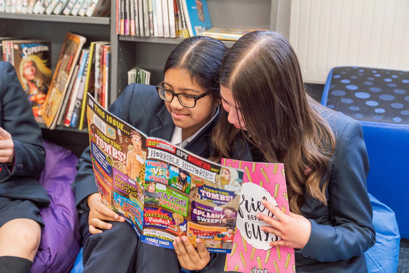Year 7 students are introduced to engaging texts to promote ‘reading for pleasure’ before progressing to study texts such as Frankenstein and Lord of the Flies. Set texts are carefully selected to ensure that we are promoting literary and choosing books to engage and enthuse students of all abilities. This is underpinned by regular LRC lessons and an enriching extracurricular programme. The English department aims to stretch and challenge more capable readers, whilst less enthusiastic readers may be energised by reading intervention groups and events, including Author Week, World Book Day and Lit Fest.