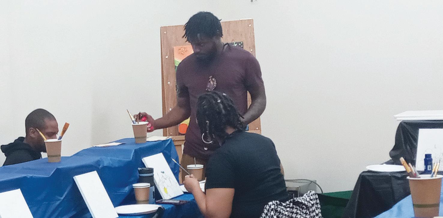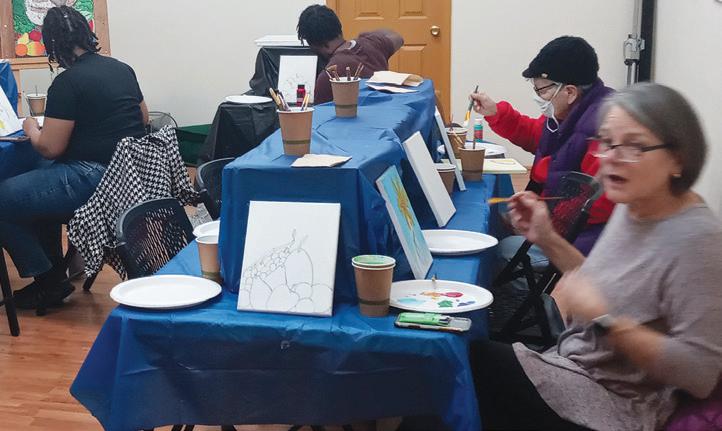 Participants focus in at last month's painting class at Weavers Way's Germantown officc.