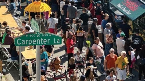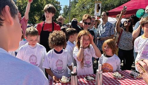 The Mt. Airy Village Fair returned to the intersection of Greene Street and Carpenter Lane on Oct. 1 for the first time since 2019 to help mark Weavers Way’s 50th anniversary. Kids gathered on a balmy Sunday to compete in the pie-eating contest (far left), groups including F2B Jawn performed dance and other routines (middle) and plenty of vendors were on hand as well.