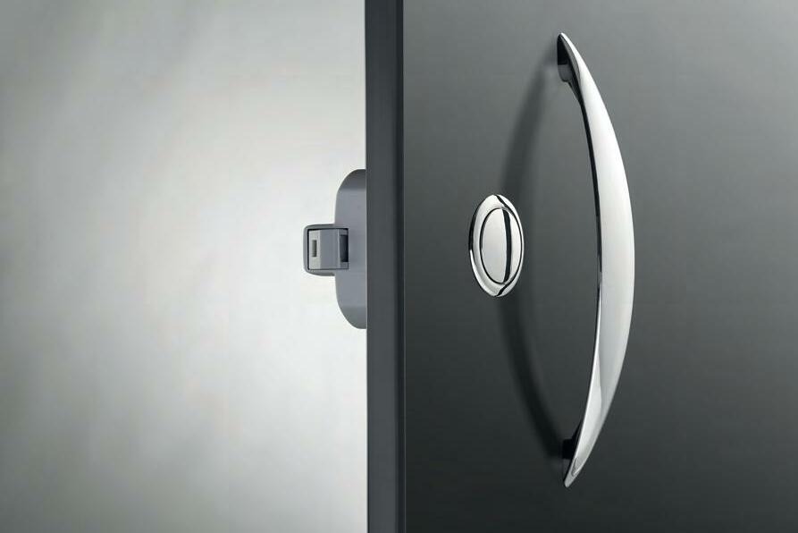RECENT DEVELOPMENTS WIDEN TITUS’ SCOPE IN MANY DIREC TIONS. TITUS MAGNET LOCK WITH SELF-LOCKING MECHANISM PROVIDES INSTANT DOOR LOCKING WITHOUT THE NEED TO ACTI VELY LOCK THE DOOR. THIS FUNCTIONALITY GIVES THE USER A RELAXED TRAVELLING EXPERIENCE AS IT ENSURES A RELIABLE CLO SING AND LOCKING OF THE CABINETS. IT ALSO FEATURES A MORE COMPACT DESIGN THAN THE FIRST GENERATION OF PUSH LOCKS TO MINIMISE PROTRUSION IN CABINET INTERIOR.