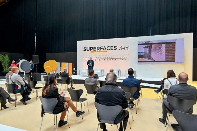 THE PRESENCE OF INNOVATIVE COMPANIES AND THE DECISION TO CONSIDER INNOVATION AS AN EXPRESSION OF THREE SPHERES - AESTHETIC, TECHNI CAL, TECHNOLOGICAL - MAKES SUPERFACES AN UNMISSABLE APPOINTMENT FOR ARCHITECTS, DESIGNERS, ENGINEERS, RETAILERS, INSTALLERS AND FIT TERS; A TRADE FAIR THAT, IN ADDITION TO BEING AN EXHIBITION MOMENT, GIVES LIFE TO A SECTOR COMMUNITY, WITH EVENTS AND OPPORTUNITIES FOR DISCUSSION THAT WILL BE SPREAD THROUGHOUT THE YEAR.
