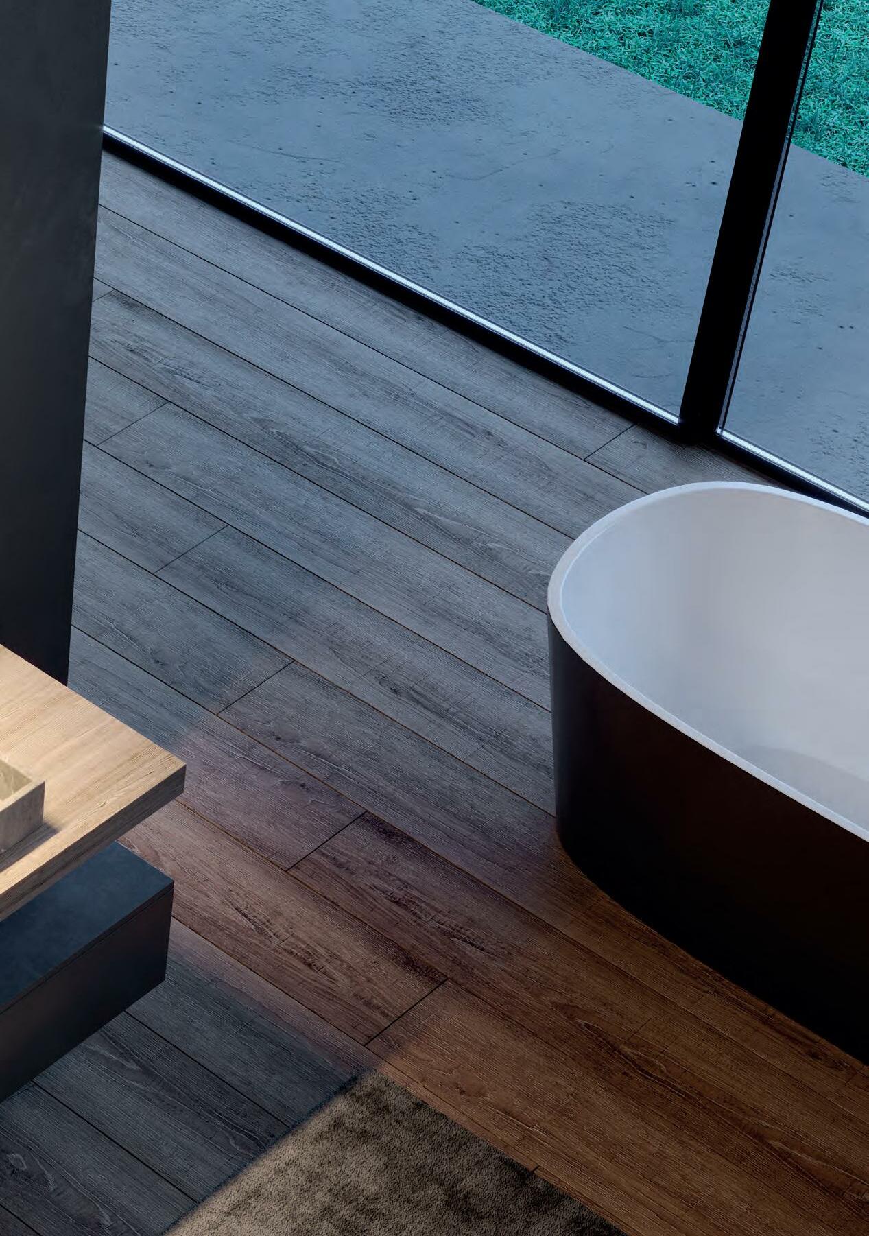 Ancora, verso la gamma dei toni grigi, bruni, argentei e antra cite, attraverso le ossidazioni dell’acciaio che fanno approdare sul suolo lunare: con la Texture Luna (piastre di differenti dimen sioni anche a progetto) si possono realizzare pavimenti, rivesti menti di pareti o scale oppure l’intera Luna nella sua raffinata bellezza può decorare una parete rendendola unica.