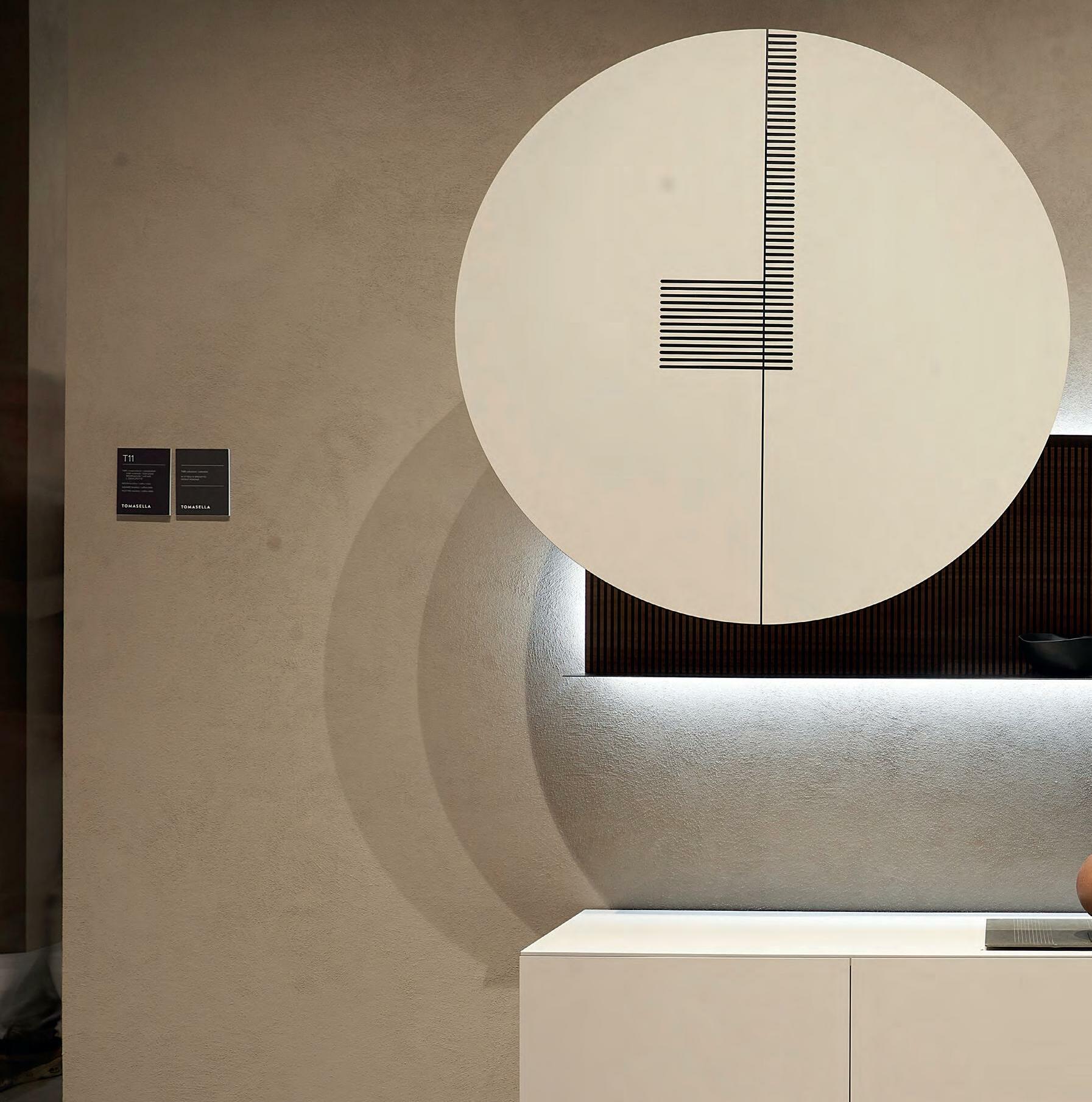 SWISSCDF è stato utilizzato per l’architettura stessa dello stand... Paolo Rossi di Rossi&Co Siamo partiti dall'identità aziendale, perché Tommasella è un'azienda nata lavorando con il legno e quando abbiamo scoperto questo pannello nero, solido, ele gante, abbiamo capito che poteva diventare non solo un pro getto come un tavolo o un contenitore, ma diventare di più: l’architettura dello stand. Attraverso il lavoro delle cannettatu re, della verniciatura particolare siamo riusciti a dimostrarlo. Progettualmente, è stato un incontro perfetto, la nostra idea e la possibilità di realizzarla al meglio.