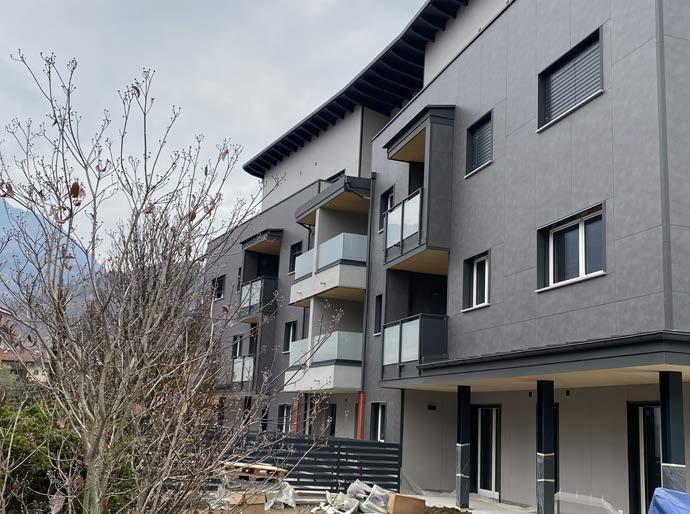 Nel Comune di Morbegno, in provincia di Sondrio, stato di recente realizzato un nuovo complesso residenziale, ricostruito interamente a partire da un fabbricato preesistente degli anni Ottanta Il nuovo edifcio, composto da 14 unit abitative disposte su 4 livelli, oltre a un piano interrato, suddiviso in due blocchi speculari, uniti da un corpo centrale per il vano scale e l’ascensore La parte interrata, il primo solaio e l’intero vano scale ascensore sono stati realizzati mediante fondazioni e murature in elevazione in cemento armato Per la parte fuori terra sono invece state predisposte strutture portanti in legno X-LAM, con una copertura in legno lamellare a tetto doppio