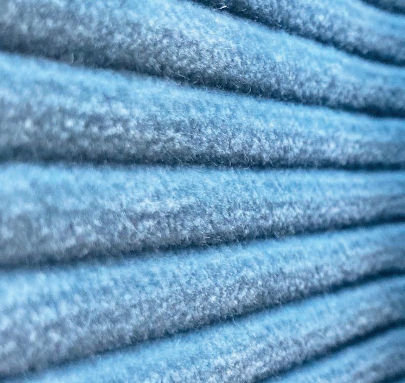 Lilia Di Lauro - Esatto. Si tratta di Nuovo Denim, che non è un denim in cotone ma un tessuto realizzato con una tecnica che consente di uscire dal telaio con una texture pronta, senza bisogno di lavaggio, che può essere usata senza stingere e senza rompersi, essendo in nylon riciclato. Non replica l’effetto del denim tradizionale, ma è pensato per chi cerca qualcosa di diverso: non invecchia, non cambia e rappresenta un’alternativa più duratura.