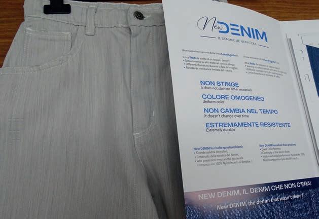 Lilia Di Lauro - Exactly. This is New Denim, which isn't cotton denim but a fabric made with a technique that allows it to come off the loom with a ready-made texture, without the need for washing, and can be used without fading or tearing, as it's made of recycled nylon. It doesn't replicate the look of traditional denim, but it's designed for those looking for something different: it doesn't age, it doesn't change, and it represents a more durable alternative.
