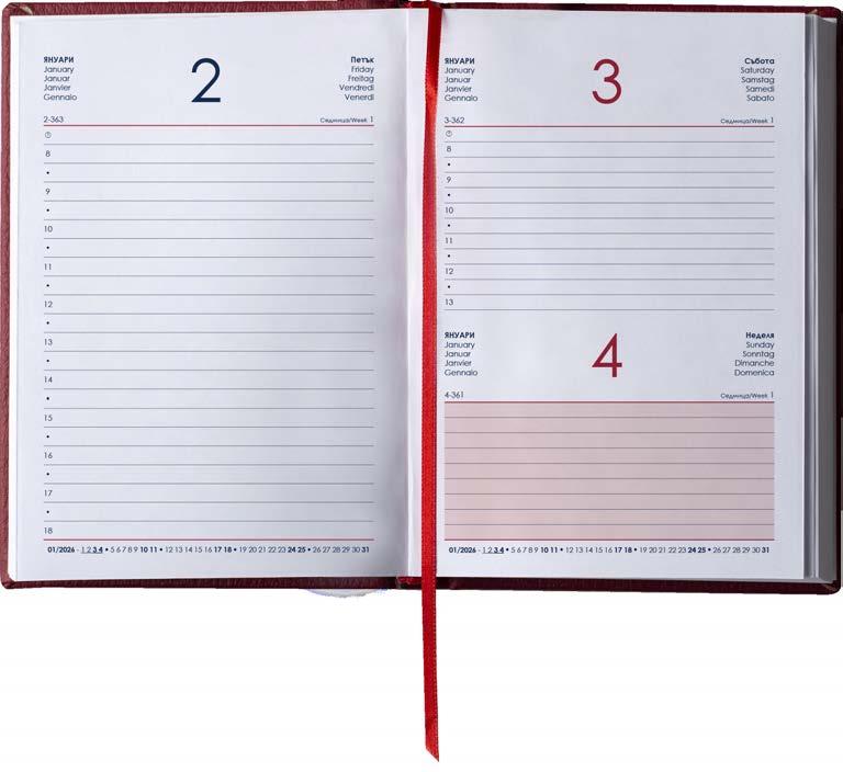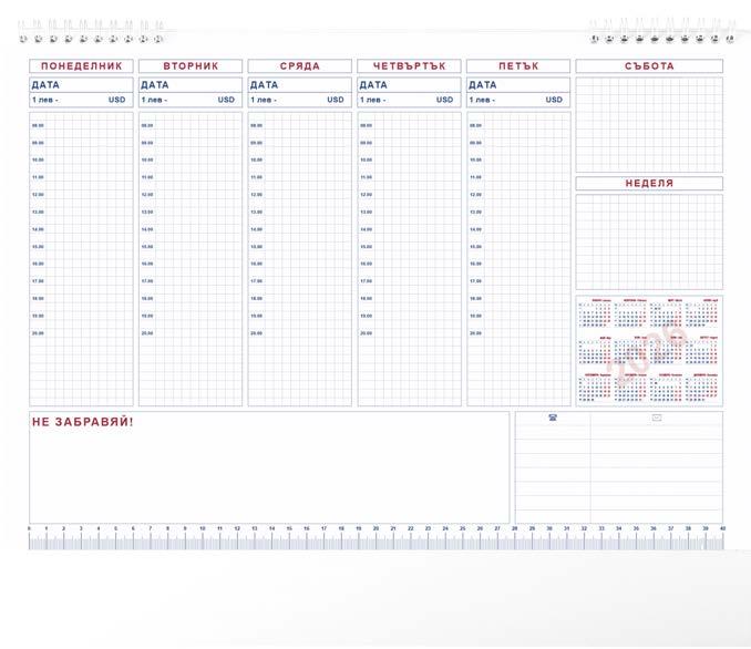 подложка: 400 гр/м2 картон; размери: 310/500 мм; 12 листа - 70 гр/м2 офсет; три цветови варианта - син/червен, сив/червен, зелен/червен