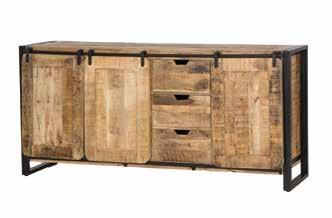 Dressoir 225 cm, vitrinekast 126 cm, tafel 190 x 95 cm en