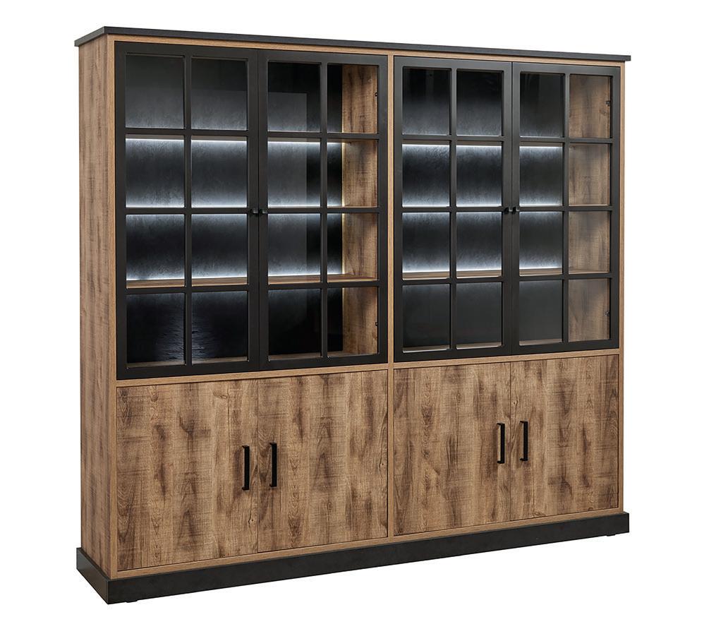 Décor chêne artisan / noir 2 portes coulissantes + 2 portes tournantes