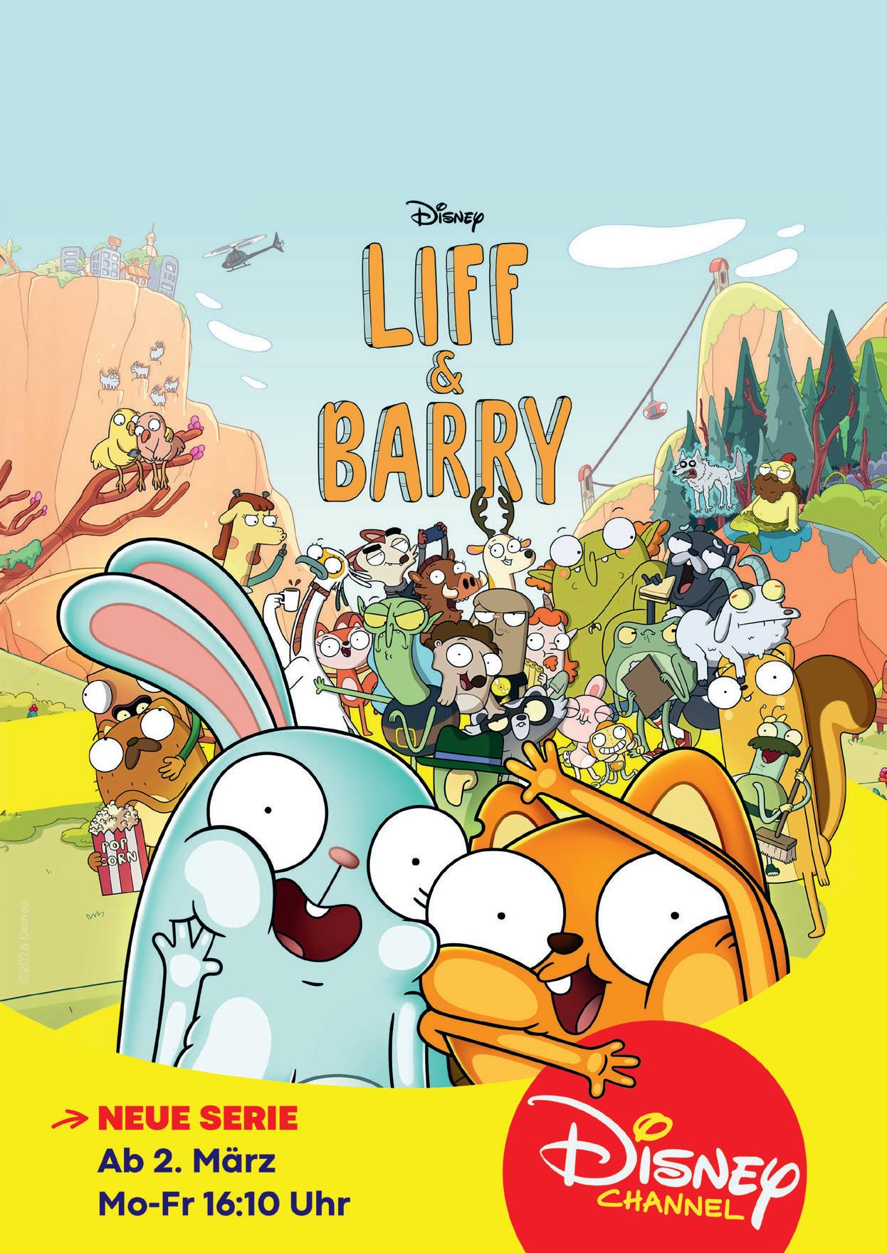 Die animierte Buddy-Comedy-Serie „Liff & Barry“ startet ab 2. März als deutsche TV-Premiere immer montags bis freitags um 16:10 Uhr im Disney Channel.