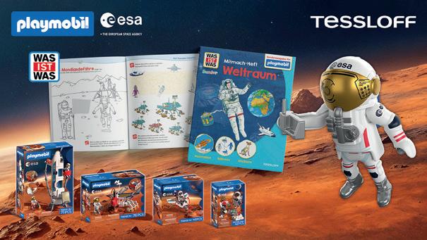 Zwei Namen, die Generationen von Kindern begleiten, sind ab sofort gemeinsam unterwegs: Der Kinderbuchverlag Tessloff und Playmobil starten im März 2026 eine Weltraumaktion, die spielerische und kreative Elemente auf besondere Weise miteinander verbindet. Wer in der Aktionsphase neue ESA-Produkte von Playmobil mit einem Mindestwert von 25 Euro erwirbt, erhält als Zugabe das „WAS IST WAS Mitmach-Heft Weltraum“ in einer speziellen Playmobil-Sonderausgabe. Das Heft lädt Kinder ein, die faszinierende Welt des Weltraums spielerisch zu erkunden – passend zu den neuen PlaymobilSets, die in Zusammenarbeit mit der Europäischen Weltraumorganisation ESA entstanden sind.
