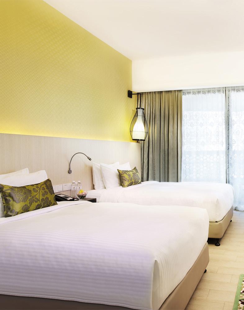 Village Hotel Katong is inspired by Singapore’s Peranakan culture. Located adjacent to the Katong V Mall in the heart of the Katong district, this upscale hotel weaves vivid colours and local motifs into its interior design. Guests can stay in a choice of chic rooms and suites, including the Peranakan Club rooms, cool off in the pool, work out at the gym and dine at the Peranakan fusion restaurant.