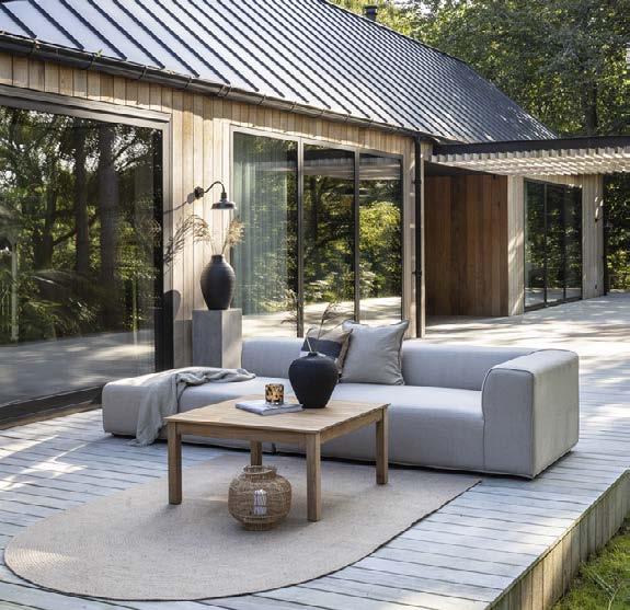 skum, vilket möjliggör att produkten kan stå ute även när det regnar. Möblerna är producerade med omtanke, med OEKO-TEX-certifierade textilier, och FSC-certifierat trä.